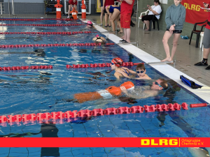 Der Wettkampftag startete mit einem dynamischen Mix aus Technik und Teamarbeit. In der anspruchsvollen Rettungsstaffel kam es auf jede Sekunde und perfekte Übergaben an, während beim Rettungsball-Zielwerfen Konzentration und Fingerspitzengefühl gefragt waren. Dass Rettungssport auch eine ordentliche Portion Humor verträgt, bewiesen die kreativen Sonderdisziplinen: Ob bei der „Nudelkette“ oder dem ungewohnten Fußwärtspaddeln – der sportliche Ehrgeiz war groß, das Lachen am Beckenrand jedoch mindestens genauso laut.